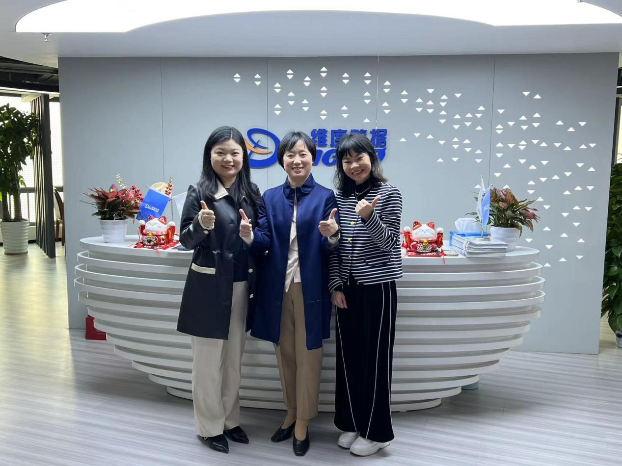 在深圳市維度數據科技股份有限公司福田分公司,副總經理張偉芳介紹了維度數據科技股份有限公司的發展歷程、核心業務、人力需求等內容;介紹了校友張安偉在公司的工作情況,表達了進一步開展合作的意愿。宋榮副書記介紹了學院的辦學歷史、學科專業設置、師資隊伍、重點科研方向等方面的情況,并感謝公司對數學與統計學學院畢業生的培養和指導。雙方達成了初步的實習實踐、人才招聘的意向。