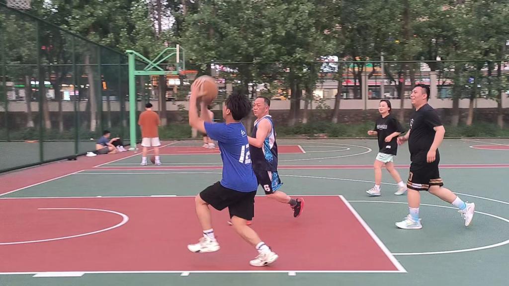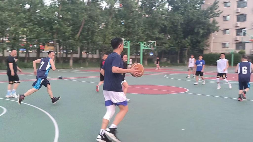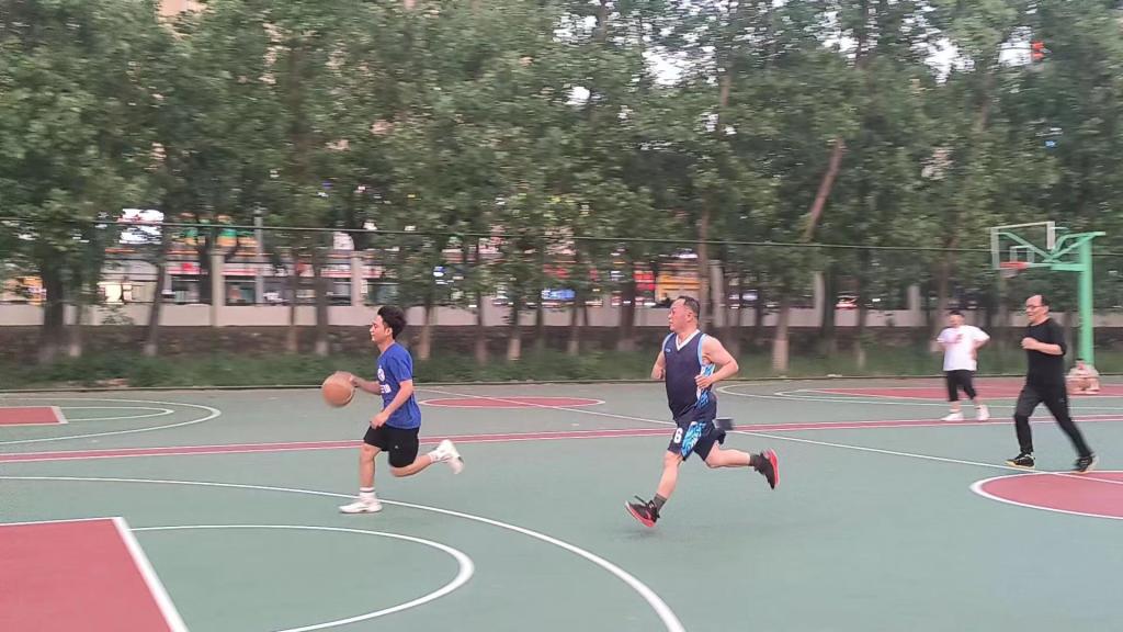 只見籃球在雙方手中輪回流轉(zhuǎn),你攻我防。學(xué)生們、老師們不分彼此,在賽場上拼搏,揮灑著汗水,展現(xiàn)著高超的技術(shù)與豐富的經(jīng)驗(yàn),打出了默契、打出了配合、打出了風(fēng)采。