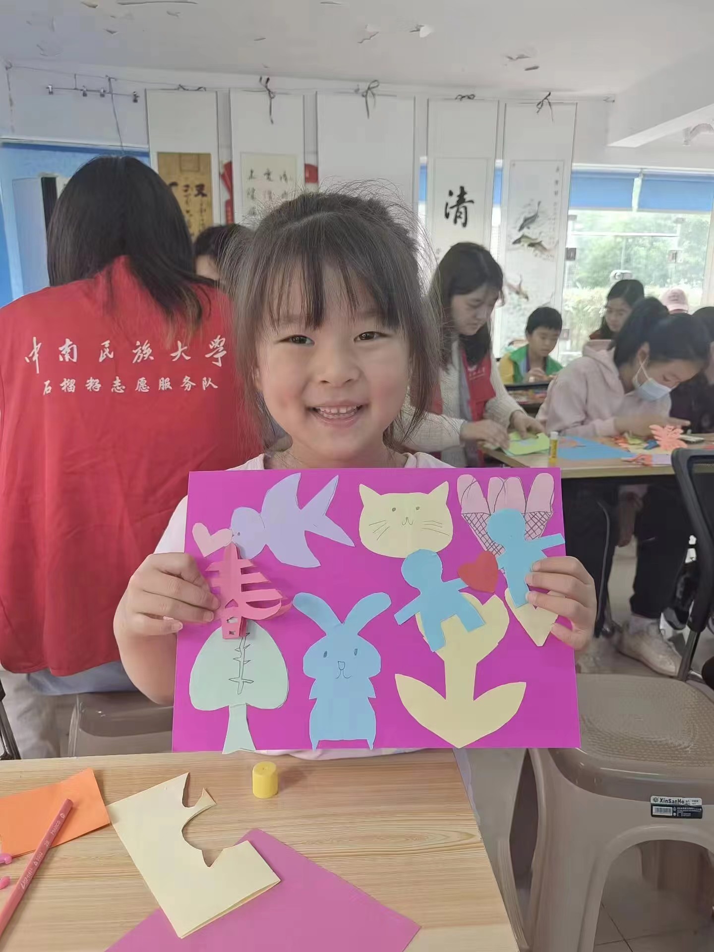 通過此次活動,不僅小朋友收獲頗多,志愿者們也在這一過程中增強了民族文化自信心,增進了文化鑒賞能力和創造力,近距離感受到了剪紙這一獨特藝術的魅力。