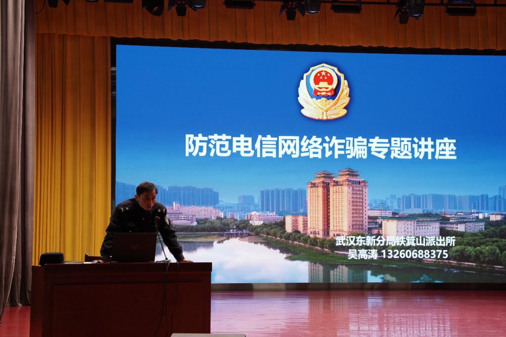 為提高學生防范電信網絡詐騙意識,有效應對各類詐騙犯罪行為能力,切實做好預防電信網絡詐騙宣傳教育工作,3月23日上午,藥學院在學術會堂舉辦防范電信網絡詐騙專題講座,武漢市東新分局鐵箕山派出所吳高濤警官受邀作為主講人,為學生講解防范電信網絡詐騙的相關知識。藥學院黨委副書記吳孔勇出席講座。講座由學院2023級輔導員李丹主持。