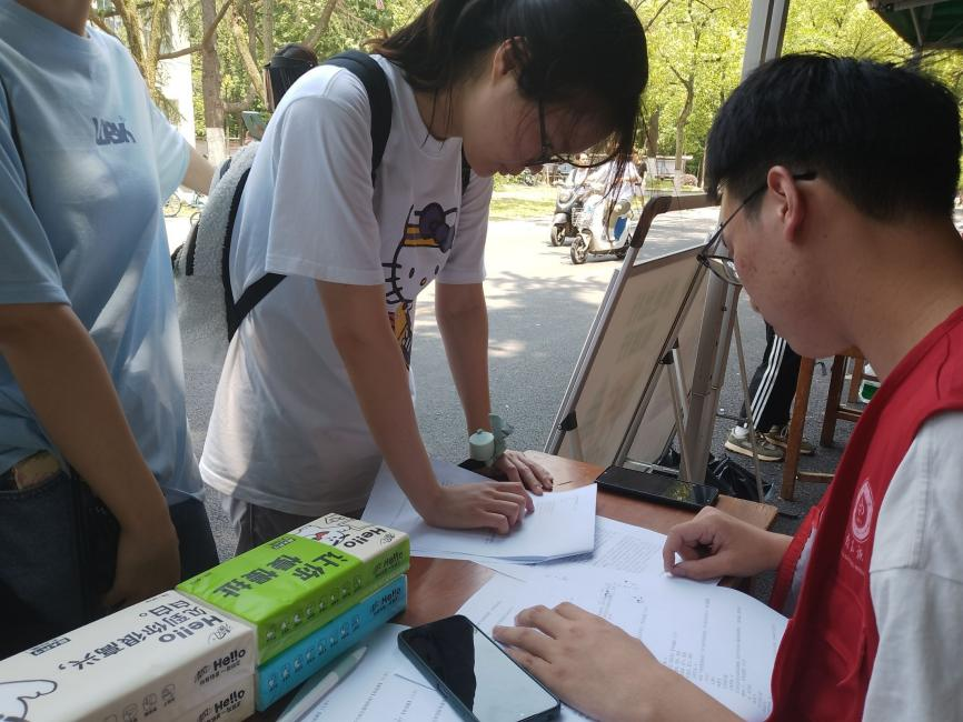 除此之外,活動還設(shè)置了節(jié)能知識問答環(huán)節(jié),參與者可從40道選擇題中選擇10道作答,答對7題即可獲得禮品,題目涵蓋家庭節(jié)能、綠色出行、節(jié)約用水等多個方面知識。問答活動使參與者在輕松愉快的氛圍中獲取環(huán)保知識。仿佛每一道題目都是一粒種子,植入人們心中,開始生根發(fā)芽,最終將環(huán)保科普的種子灑向更多人。活動最后,志愿者引導(dǎo)同學(xué)們在橫幅上簽名留念,這不僅是一次參與活動的紀(jì)念,更是參與者對環(huán)境保護(hù)的莊嚴(yán)承諾。