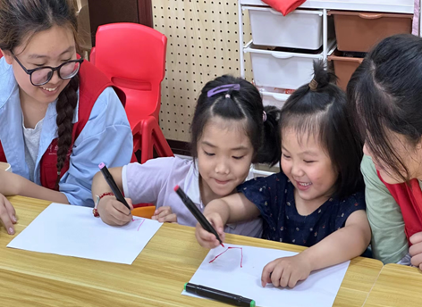 志愿者教小朋友繪畫 資環(huán)青協(xié)攝