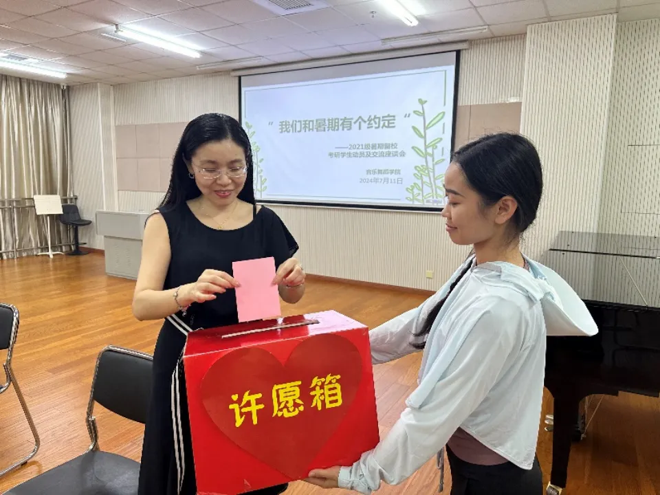 隨后,進(jìn)行師生答疑交流環(huán)節(jié),學(xué)生向老師及領(lǐng)導(dǎo)們提出生活或?qū)W業(yè)上的困惑,由老師進(jìn)行記錄并解答。最后同學(xué)們紛紛在心愿紙上寫下愿望與暑假學(xué)習(xí)目標(biāo),投入心愿箱。座談會(huì)上,院長(zhǎng)羅義華語(yǔ)重心長(zhǎng)地向同學(xué)們強(qiáng)調(diào),書中自有黃金屋,書中自有顏如玉,期望大家多讀書,多學(xué)習(xí),充實(shí)豐富自己。鼓勵(lì)大家積極考研,也祝愿大家心想事成,一“研”為定。