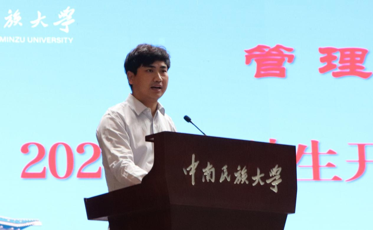 管理科學與工程類2401班李淳赫同學作為新生代表發言。他對入學以來幫助過他的師生表示感謝,并承諾將秉承“篤信好學,自然寬和”的校訓精神,認真學習,積極進取,以實際行動踐行當代大學生的使命擔當。