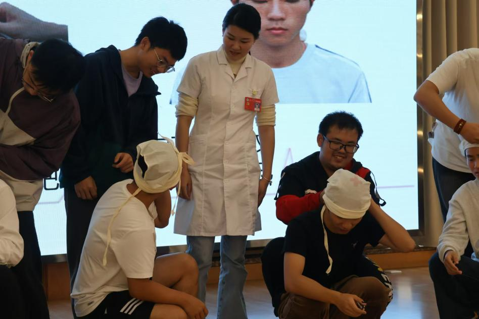 將理論講解與實際操作相結合,楊冰老師全面展示了急救包扎技巧,并通過現場演示加深了大家對這些技能的理解,也為后續的實踐操作打下了理論基礎。為了確保每位學員在遭遇意外傷害時能迅速且有效地進行初步自救互救,培訓還特別配備了急救包和各類包扎材料,供學員們進行模擬包扎練習。