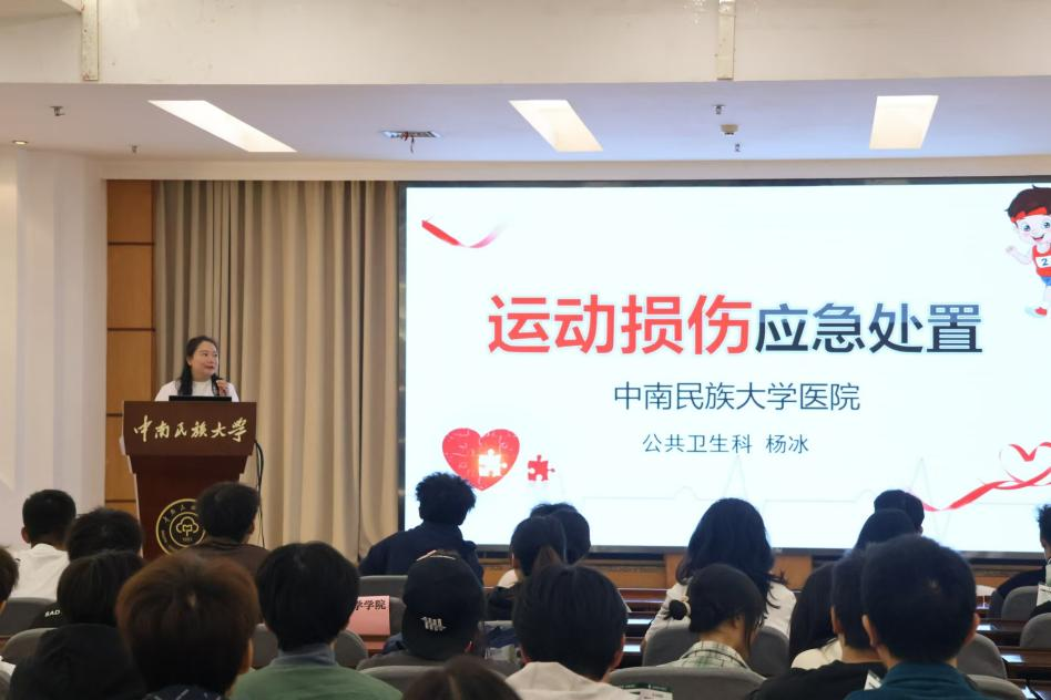 為加強學生安全防護意識,提升學生群體對運動安全的認識,增強其在運動中突發傷害時的急救能力,10月19日上午,學工部聯合校醫院在校學術交流中心潤良報告廳開展運動安全急救知識培訓。本次培訓邀請了校醫院公共衛生科主治醫師、武漢大學公共衛生碩士楊冰老師為大家進行講解和演示相關知識技能,各學院院級學生運動團隊學生負責人共220人參與培訓。
