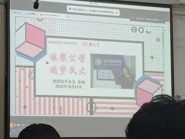 10月11日晚7點,公共管理學院新生入學教育系列活動——優秀畢業生分享會在15號教學樓各自習室以騰訊會議線上形式開展。公共管理學院2024屆優秀校友張璇擔任此次活動的分享人,2024級全體本科新生參加活動。