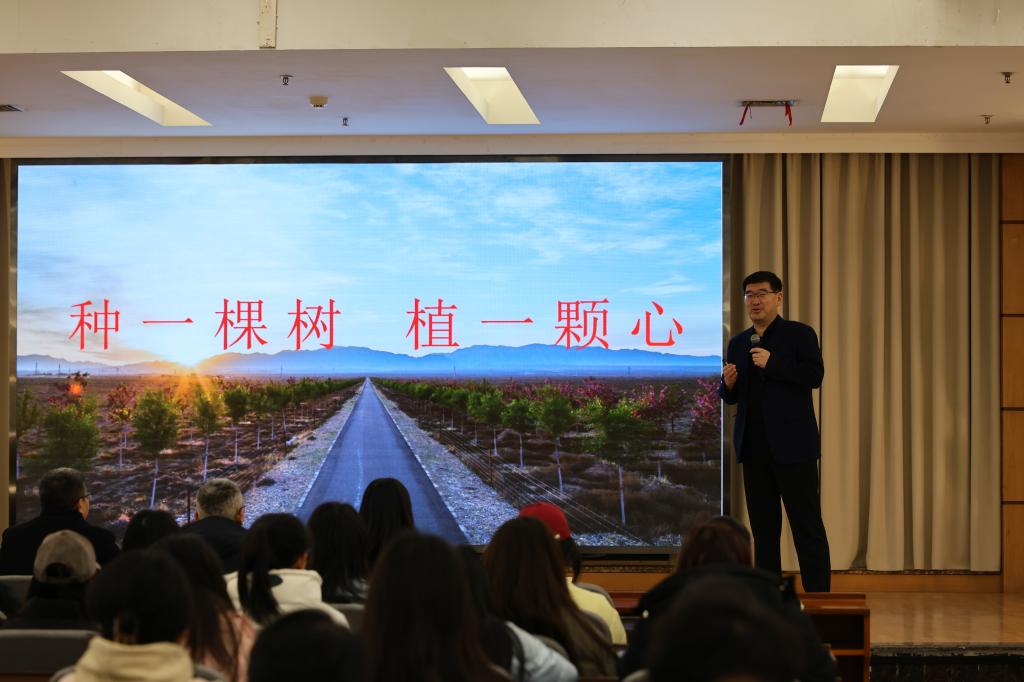 12月12日上午,由黨委學生工作部主辦的《種一棵樹,植一顆心》——阿拉善“種樹植心”志愿服務行動公益講座在學術交流中心潤良報告廳開展。本次講座由阿拉善種樹植心生態文明實踐教育中心創建者吳向偉老師主講。黨委學工部有關領導及科室負責人、部分輔導員以及資源與環境學院、管理學院、經濟學院等學院的學生代表們積極參與。