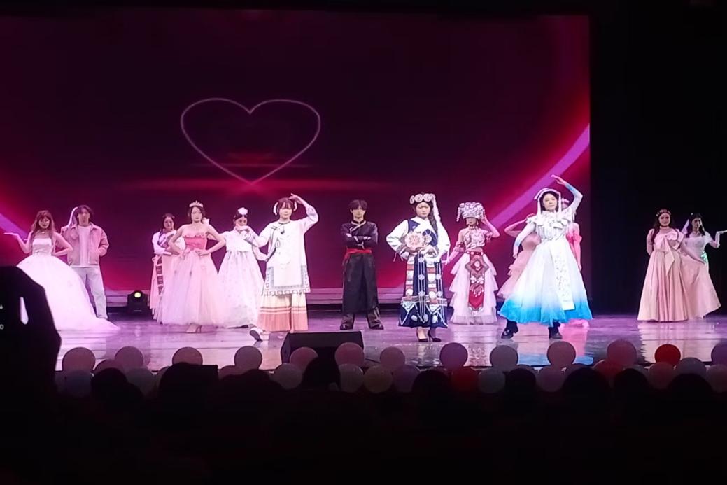晚會以一場震撼人心的民族華服走秀拉開序幕。身著各民族傳統服飾的同學們依次登臺,將中華民族豐富多彩的文化內涵淋漓盡致地展現在觀眾面前,以直觀的形式傳遞了“和合中華”的主題思想,彰顯了各民族團結共融、和諧發展的精神內核。華美的服飾、優雅的步伐與自信的笑容交相輝映,臺下掌聲雷動。