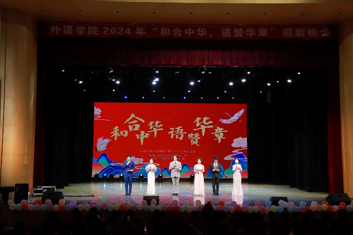 此次迎新晚會不僅是一場聯歡晚會,更是一堂凝聚思想、激發共鳴的生動思政課。它以鑄牢中華民族共同體意識為主線,以文化為橋梁,充分展現了外語學院“融通中外,明德致遠”的院訓精神,巧妙地將多元文化與時代精神融為一體,讓師生深刻感受到“和合”理念的時代意義,激勵新生珍惜大學時光,肩負時代責任,在青春征程中譜寫屬于自己的錦繡華章。迎新晚會雖已圓滿落幕,但夢想的旅程才剛剛啟航。相信2024級外院學子在未來的日子里,將以青春之我、奮斗之我,為“和合中華”添彩,為“語贊華章”發聲!