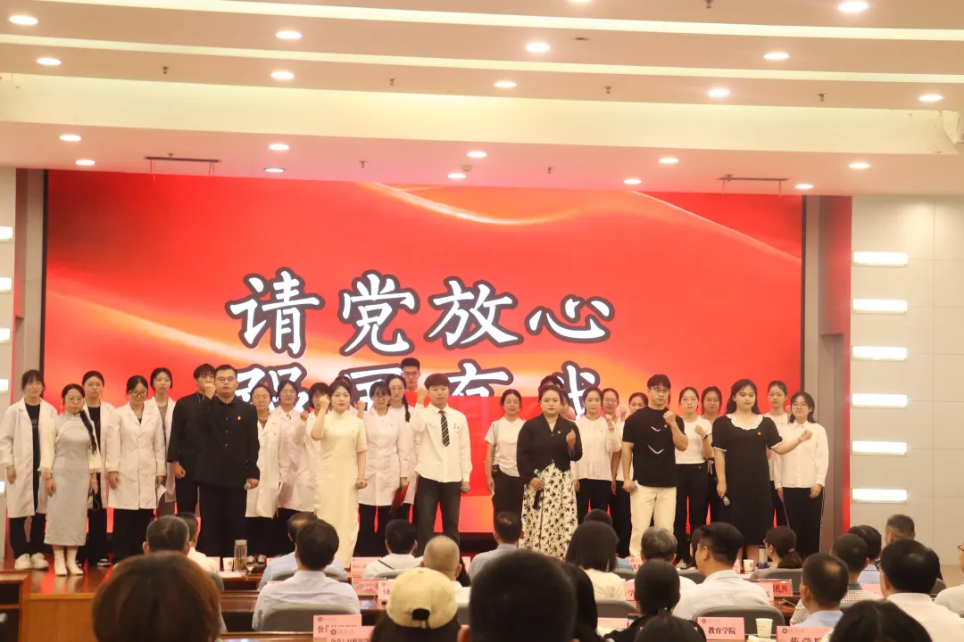 支部風采展示中,6個學院圍繞支部建設成果、學習黨的二十大精神成果,并通過PPT匯報、微黨課、舞臺劇、演唱、談心談話等現場表演方式展示黨支部的活力與創新實踐。