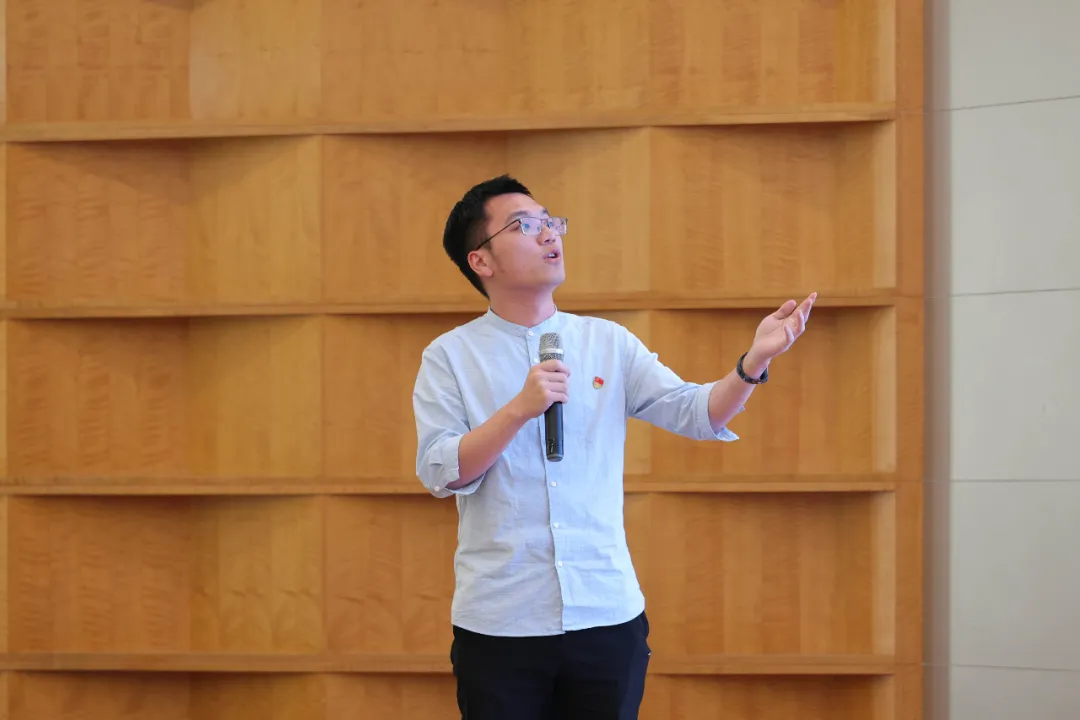 計算機科學學院2022級研究生黨支部以PPT形式分享他們的故事。幻燈片隨著研究生們的故事展開,一幕幕場景在屏幕上呈現:他們在實驗室里攻克科研難關;在討論會上思想碰撞;在社會志愿活動中奉獻愛心......他們秉承“正青春,擔當新征程”的信念,繼承黨的光榮傳統,肩負時代賦予的使命,在學院黨委的領導下,勇往直前。