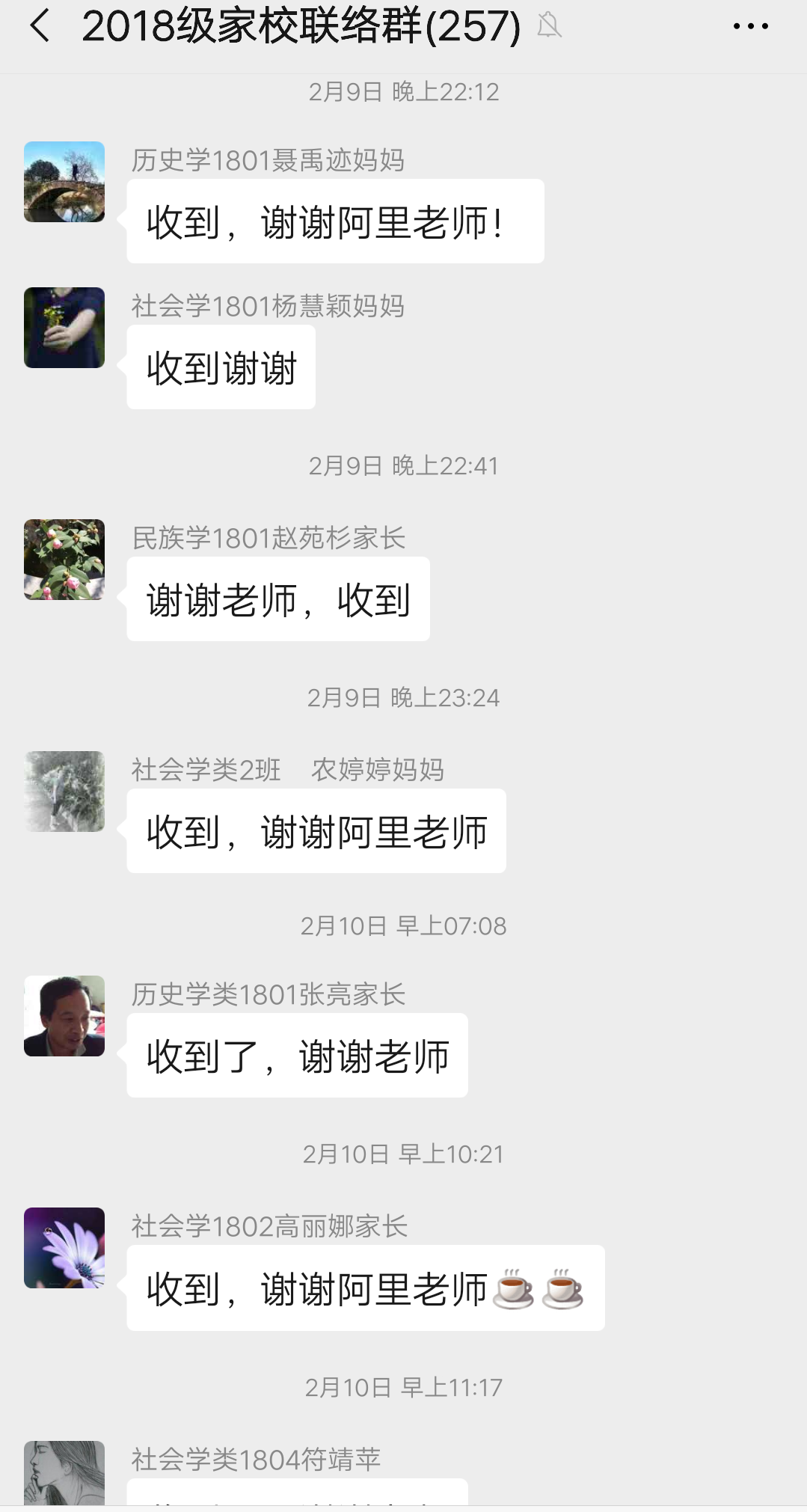 阿里老師在線工作記錄。 疫情就是命令,防控就是責任。為做好疫情防控工作,阿里老師加強對留校學生情況的摸排,“一對一”了解每個學生及其家庭情況,幫助學生解決生活上遇到的困難。2月15日,阿里老師像往日一樣,在排查學生基本狀態時,了解到一名新疆籍女生宿舍存在斷網情況,學校已經開始相關課程的網上學習了,學生很著急。阿里及時與學校網絡維護的相關人員聯系指導學生修復網絡。恢復網絡后,學生立刻回歸了“在線”學習。 學生的安全感是什么?在阿里心中,作為一名輔導員,是關注需求,及時回應,是學生有需要的時候第一時間站出來并站在學生身邊的那個人。 從疫情爆發至今的每一天,阿里老師始終保持著與自己所帶的2018級的學生及家長的密切聯系,將學校的相關通知及工作安排第一時間向學生及家長傳達,時刻叮囑大家注意保護自己。他說:“每一個學生的平安,就是戰“疫”前線最好的消息。” 戰“疫”宣言: 此時此刻,戰斗未曾停息。作為一名輔導員,我們每個人都在自己的崗位上戰斗。越是戰役吃勁的時刻,越需要我們挺身而出,我堅信,不隔愛、不停學、不離線、必勝利。我們終將相聚于南湖畔一起載歌載舞,共繹民大風情。 (來源:民族學與社會學學院 編輯:梁瀟瀟) invisible invisible invisible invisible