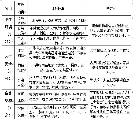中南民族大學學生宿舍檢查標準
