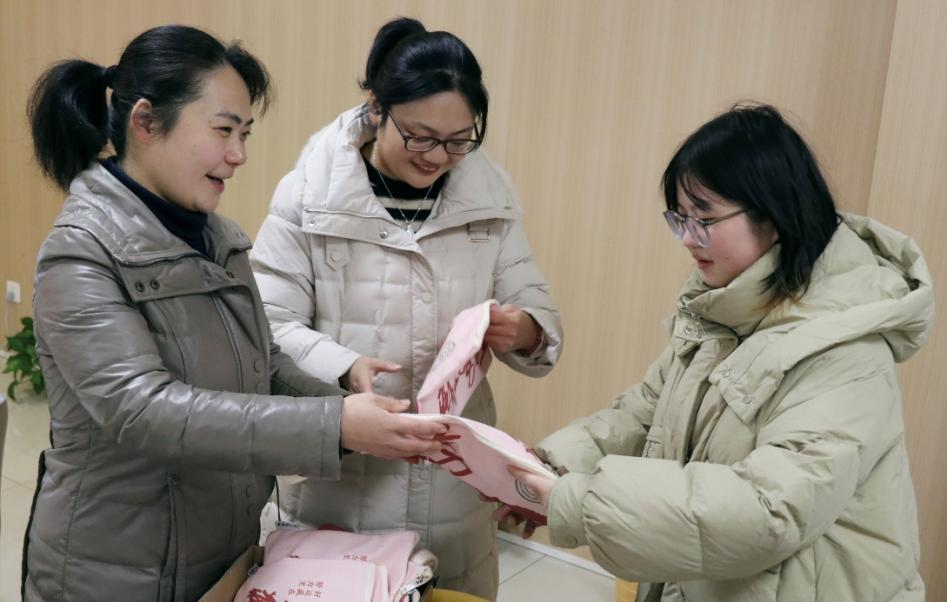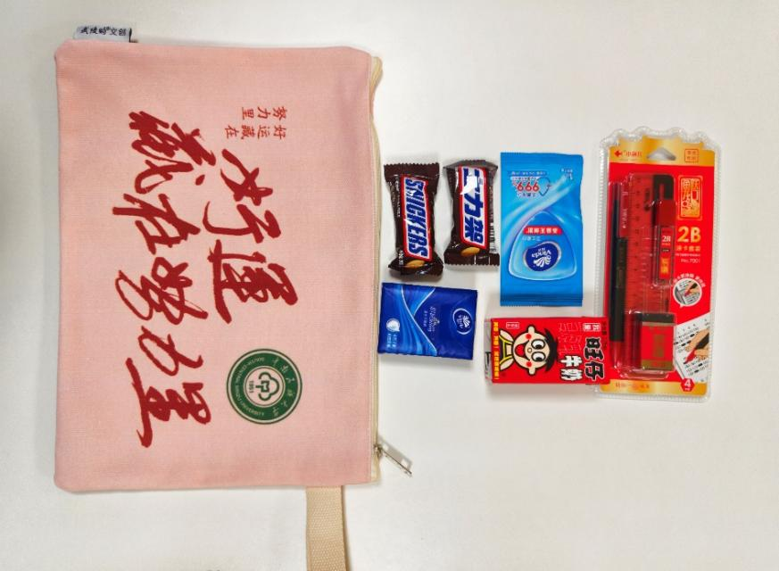 隨后,與會領導和輔導員、班導師走到學生面前,為學生送上考研大禮包。禮包包括考試文具套裝、紙巾、濕巾、士力架等物資,現(xiàn)場洋溢著溫暖的笑容和愉悅的笑聲。