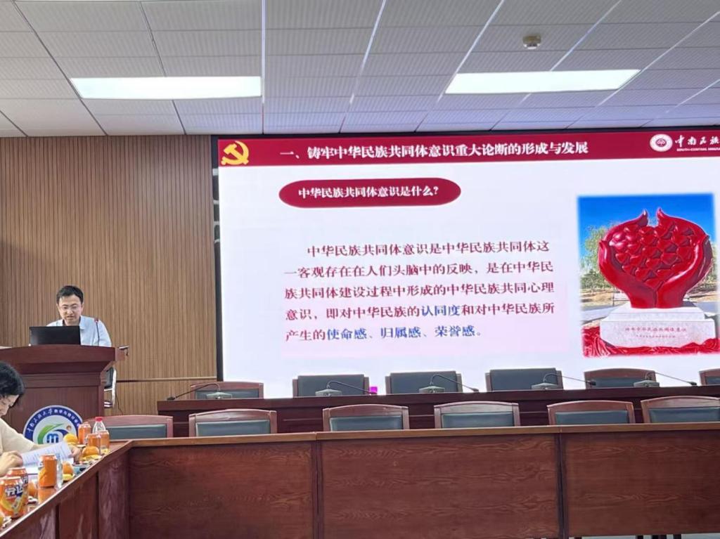 會上,郭暉以“做鑄牢中華民族共同體意識的踐行者和守望者”為題,為畢業生黨員講“大思政課”。郭暉圍繞鑄牢中華民族共同體意識的形成與發展、重大意義、歷史邏輯、核心要義、重大原則和實踐要求等方面,理論與實際相結合,為畢業生黨員帶來了生動難忘的一課,寄語畢業生黨員加強理論學習、增進文化認同、立足本職工作、勇于擔當作為、培養家國情懷,積極投身民族團結進步事業,促進各民族交往交流交融。