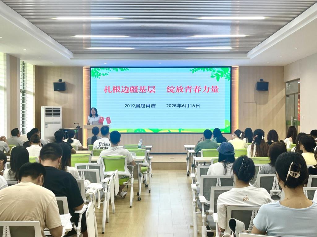 李建青作總結發(fā)言。她對屈肖潔回校交流分享表達誠摯感謝,并寄語同學們,要善于抓住時代賦予的機遇,樹立長遠眼光,以更宏大的格局規(guī)劃個人發(fā)展,以優(yōu)秀校友為榜樣,積極響應國家號召,主動奔赴祖國最需要的地方,以實際行動展現新時代青年的使命擔當。