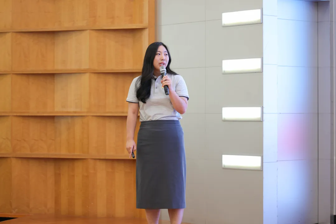 計算機科學學院2022級研究生黨支部以PPT形式分享他們的故事。幻燈片隨著研究生們的故事展開,一幕幕場景在屏幕上呈現:他們在實驗室里攻克科研難關;在討論會上思想碰撞;在社會志愿活動中奉獻愛心......他們秉承“正青春,擔當新征程”的信念,繼承黨的光榮傳統,肩負時代賦予的使命,在學院黨委的領導下,勇往直前。