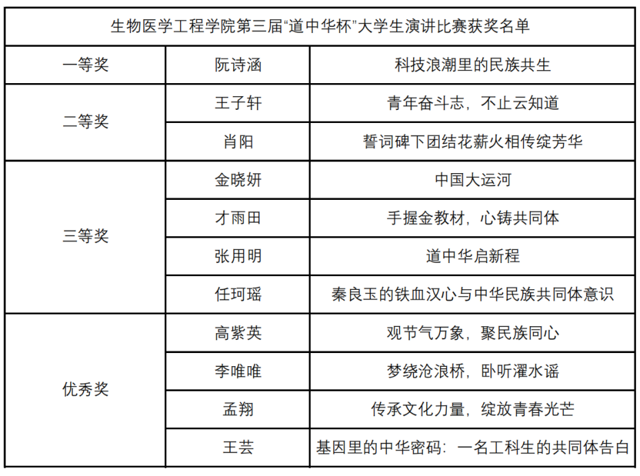 本次比賽各年級學生紛紛踴躍參加,最終11名選手進入決賽。其中生醫2408班阮詩涵從生物醫學工程專業角度出發,講述了醫工融合如何鑄牢中華民族共同體意識。她將芯片焊接比作民族團結,分享了與不同民族同學的合作經歷。她說:“讓古老文明與現代科技十指相扣,就是我們00后最浪漫的焊點。”