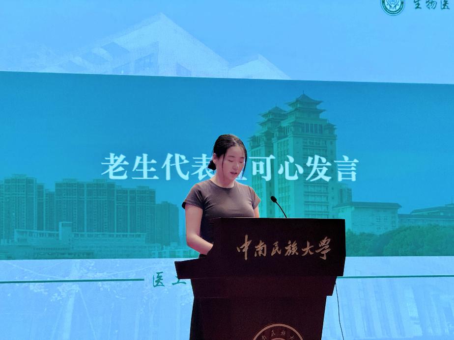 老生代表孟可心結合自身經歷,為學弟學妹們帶來了實用又貼心的學習生活建議。新生代表、生醫類2504班冉皓銘則圍繞院長講話與個人曾在高原服務的經歷,抒發了對生物醫學工程專業的初步理解與服務社會的志向,言語鏗鏘、信念堅定。