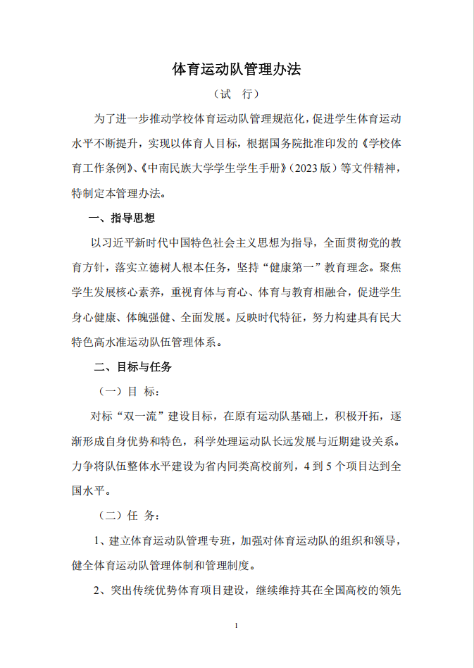 中南民族大學體育運動隊管理辦法