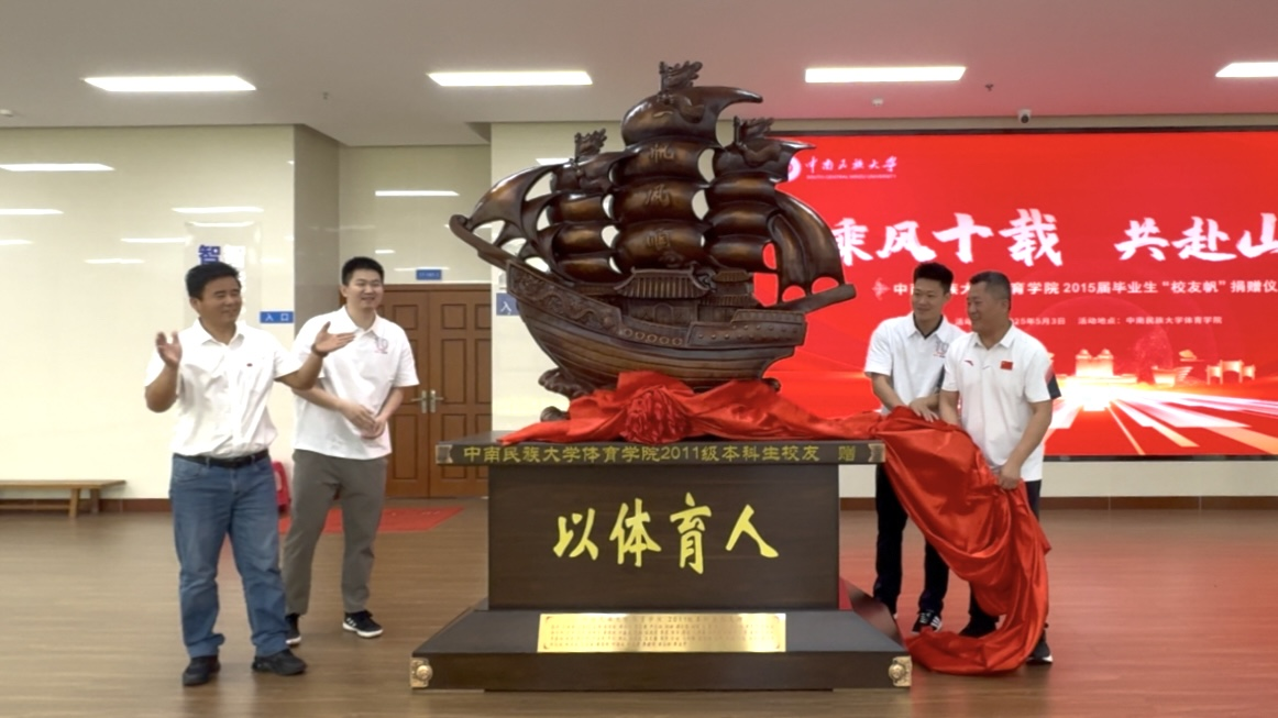 上午11時30分,院領導班子陪同校友們移步體訓樓進行了隆重的捐贈儀式,校友們向體育學院捐贈“一帆風順”巨型雕像,象征體育學院發(fā)展乘風破浪,一帆風順。雕像上“以體育人”的大字,更是體現(xiàn)了通過體育運動實現(xiàn)全面育人的教育理念。
