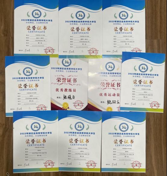 圖為我校體育舞蹈隊參加本次比賽獲得的榮譽(yù)證書 陳顏悅 攝