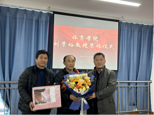 榮休儀式上,學(xué)院領(lǐng)導(dǎo)為劉景裕教授佩戴綬帶、送上鮮花和祝福。郝家春院長代表學(xué)院充分肯定了劉景裕教授在教育教學(xué)中的突出貢獻(xiàn),認(rèn)為劉景裕教授在民大工作期間充分展現(xiàn)了有理想信念、有道德情操、有扎實(shí)學(xué)識、有仁愛之心的良好精神風(fēng)貌,也希望劉景裕教授能繼續(xù)發(fā)揮對年輕教師的幫扶和引導(dǎo)作用,共同推動體育學(xué)院課程建設(shè)和人才培養(yǎng)再上臺階。