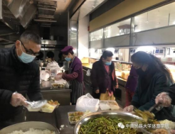 在此次抗擊疫情的工作中,體育學院教師積極投身抗疫,主動承擔食堂飲食保障工作,全力保證后勤服務穩定,為防疫保障服務添磚加瓦。