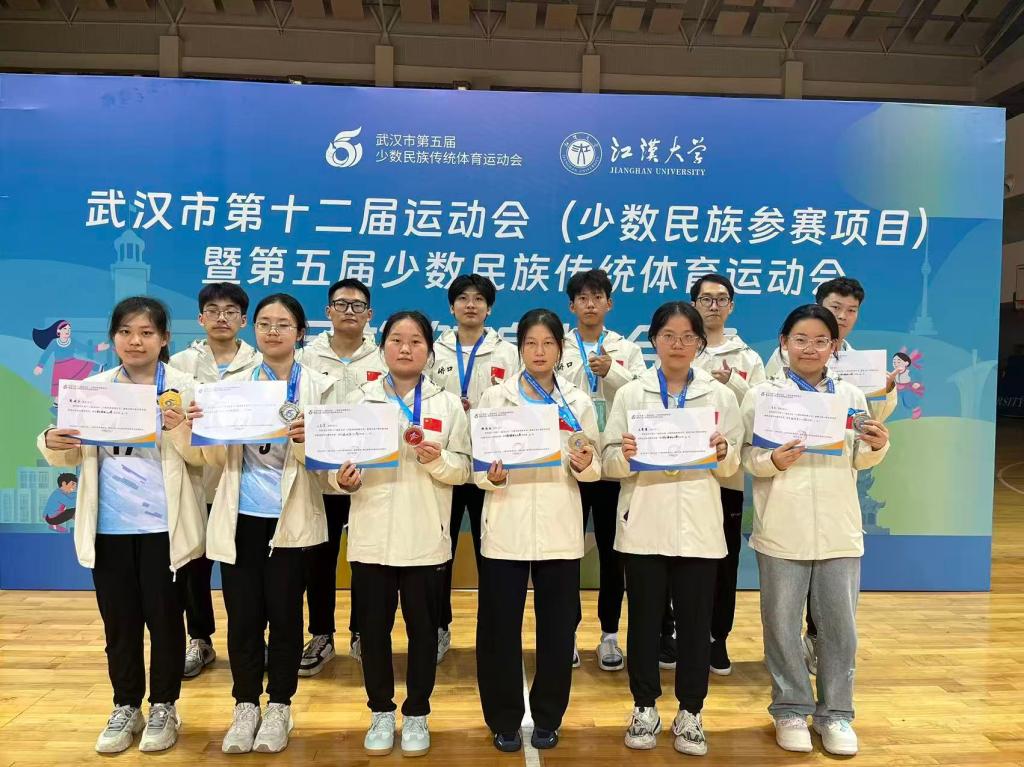 2025年9月24日,武漢市第十二屆運動會(少數(shù)民族參賽項目)暨第五屆少數(shù)民族傳統(tǒng)體育運動會在江漢大學(xué)隆重舉行。中南民族大學(xué)校毽球隊派出6名男隊員和6名女隊員,共計12人的隊伍參加毽球項目比賽,在毽球項目中表現(xiàn)優(yōu)異,斬獲?男子雙人賽冠軍?和?男子三人賽亞軍?的驕人成績,展現(xiàn)了學(xué)校在少數(shù)民族傳統(tǒng)體育項目上的雄厚實力。