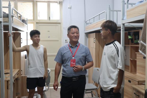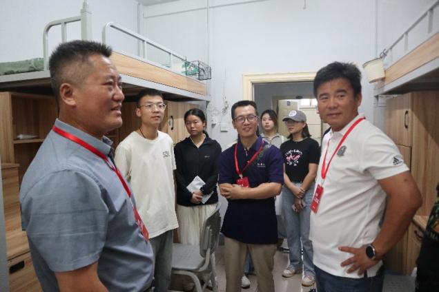 走訪中,學(xué)院領(lǐng)導(dǎo)同新生進(jìn)行了親切交談。從新生家鄉(xiāng)所在省份到氣候是否適應(yīng);從大學(xué)填報(bào)志愿到體考專項(xiàng)分?jǐn)?shù);從報(bào)到過(guò)程中的困難到未來(lái)的學(xué)習(xí)生活規(guī)劃,學(xué)院領(lǐng)導(dǎo)耐心與同學(xué)們交流,傾聽(tīng)同學(xué)們的心聲,為他們答疑解惑,并給予切實(shí)可行的建議。交流中,洪書(shū)記特別強(qiáng)調(diào)了樹(shù)立理想信念和確立學(xué)業(yè)目標(biāo)的重要性,同時(shí)要遵循學(xué)校學(xué)院的各項(xiàng)規(guī)章制度、注意人身安全、防范網(wǎng)絡(luò)安全,平平安安才是度過(guò)大學(xué)四年的基本保證。