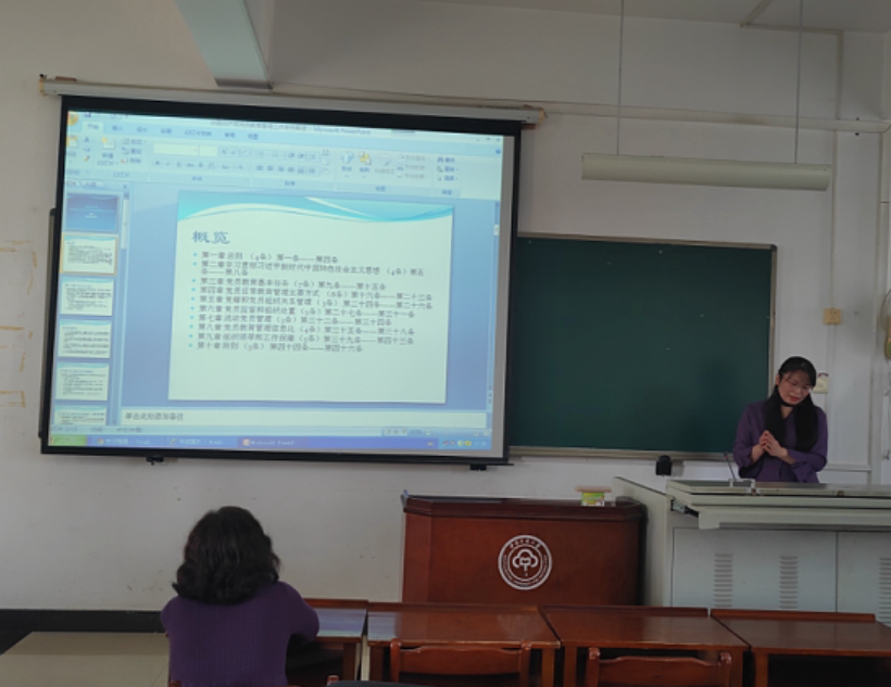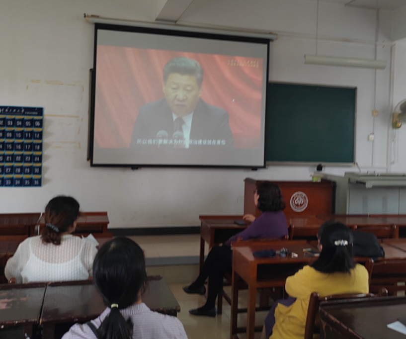 9月24日中午1點,教工第五支部全體黨員喜聚10-508教室開展9月主題黨日活動,入黨積極分子李小芳列席此次學習活動。會議由支部組織委員馮艷玲同志主持。此次活動分兩個部分開展,首先,全體黨員同志集體觀看學習強國教育視頻——《把黨的政治建設擺在首位》,黨員同志們深刻認識到黨的政治建設的重要性和必要性。