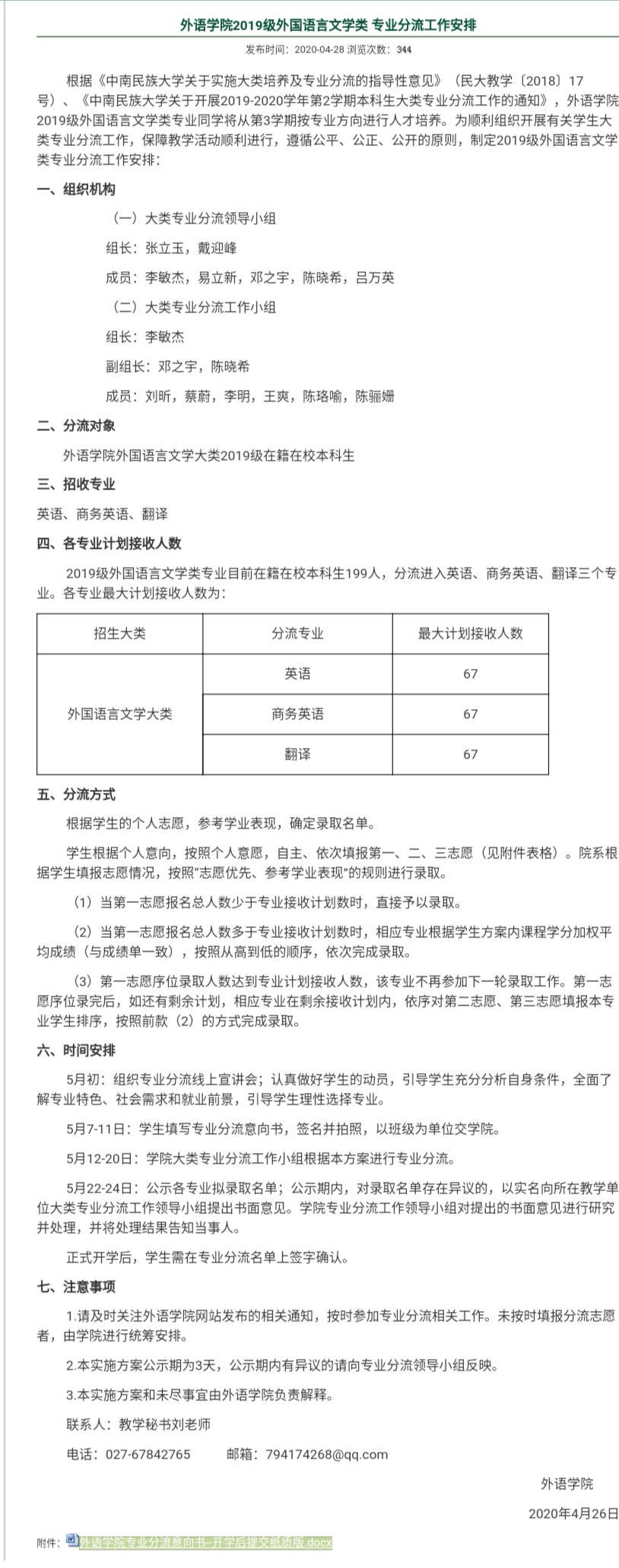 為推進我院專業分流工作順利進行,5月6日下午,外國語言文學類專業分流動員會通過企業微信順利召開。外語學院副院長李敏杰,英語系、翻譯系及商務英語系主任、副主任和教師代表,教學秘書及2019級輔導員出席本次會議。外國語言文學類專業全體同學參加此次線上會議。陳驪姍擔任本次會議主持人。