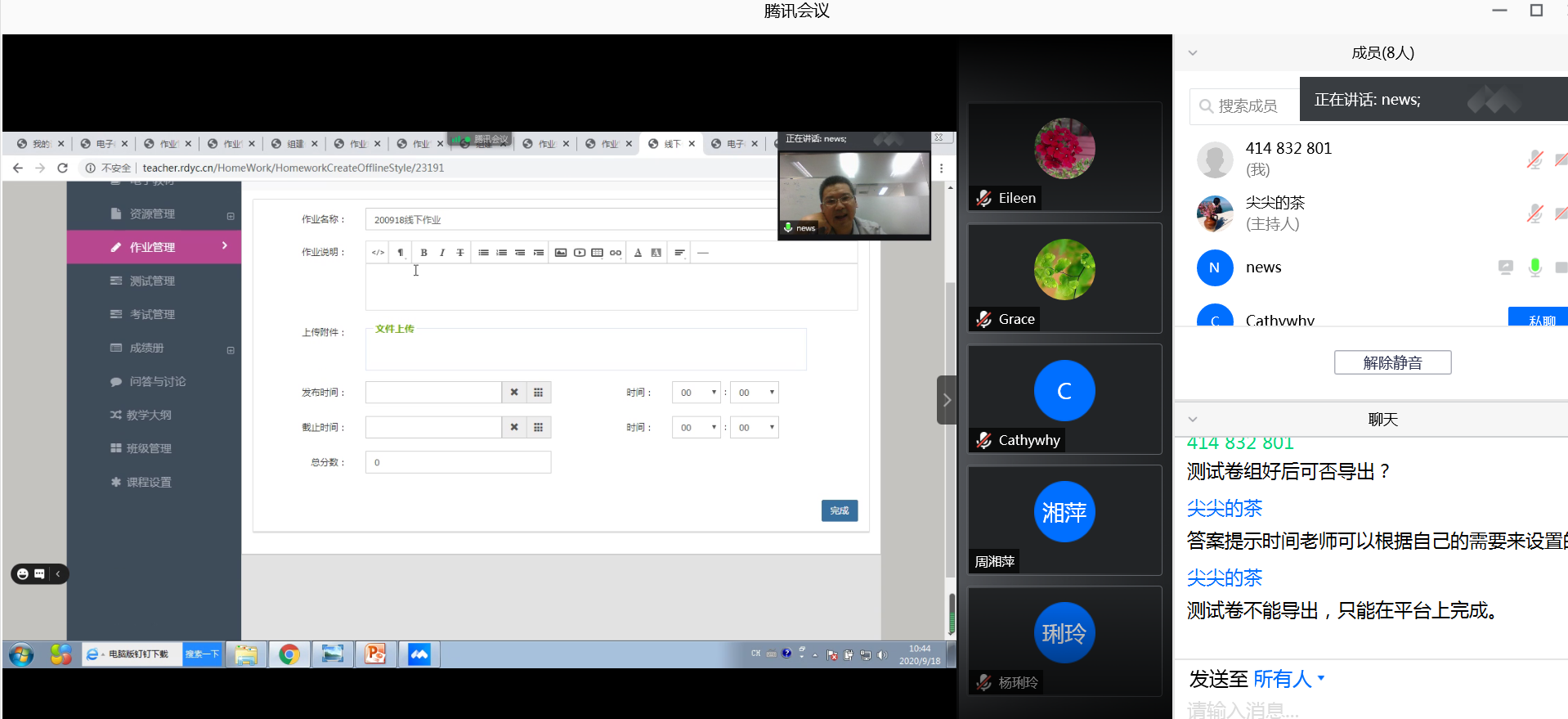 2020年9月18日早上10點,人民大學(xué)出版社在騰訊會議上為大英三系6位教師開展了一場深入細(xì)致的蕓窗數(shù)字教材平臺遠(yuǎn)程培訓(xùn)會,培訓(xùn)會由人民大學(xué)出版社外語分社策劃編輯程子殊老師主持,數(shù)字部王新文老師主講。在培訓(xùn)會上,大英三系老師結(jié)合上學(xué)期蕓窗平臺使用體驗,更系統(tǒng)全面地了解蕓窗平臺豐富多媒體資源的利用、智能化作業(yè)和測試生成和管理以及學(xué)習(xí)質(zhì)量監(jiān)控等問題。為高效開展研究生英語線上線下混合式教學(xué)做好了數(shù)字技術(shù)準(zhǔn)備。培訓(xùn)會后,大英三系老師結(jié)合自己使用體驗和未來需求與王老師進(jìn)行深入文字和語音交流討論。