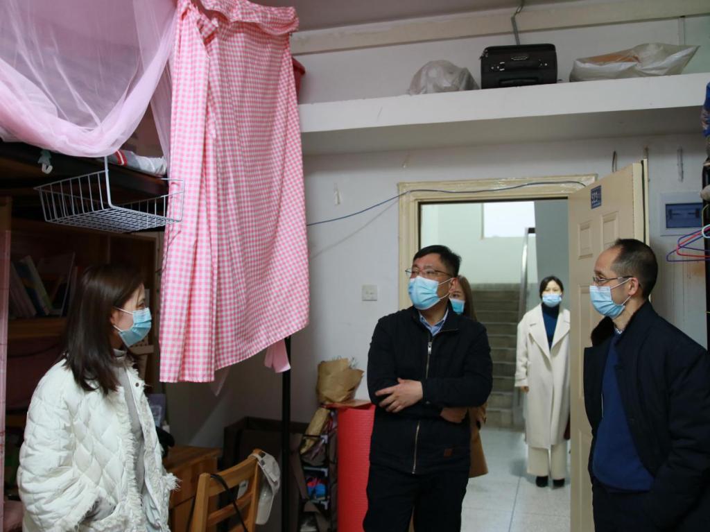 領導老師們還查看了宿舍空調、電燈等設施,了解同學們學習生活上的具體困難。