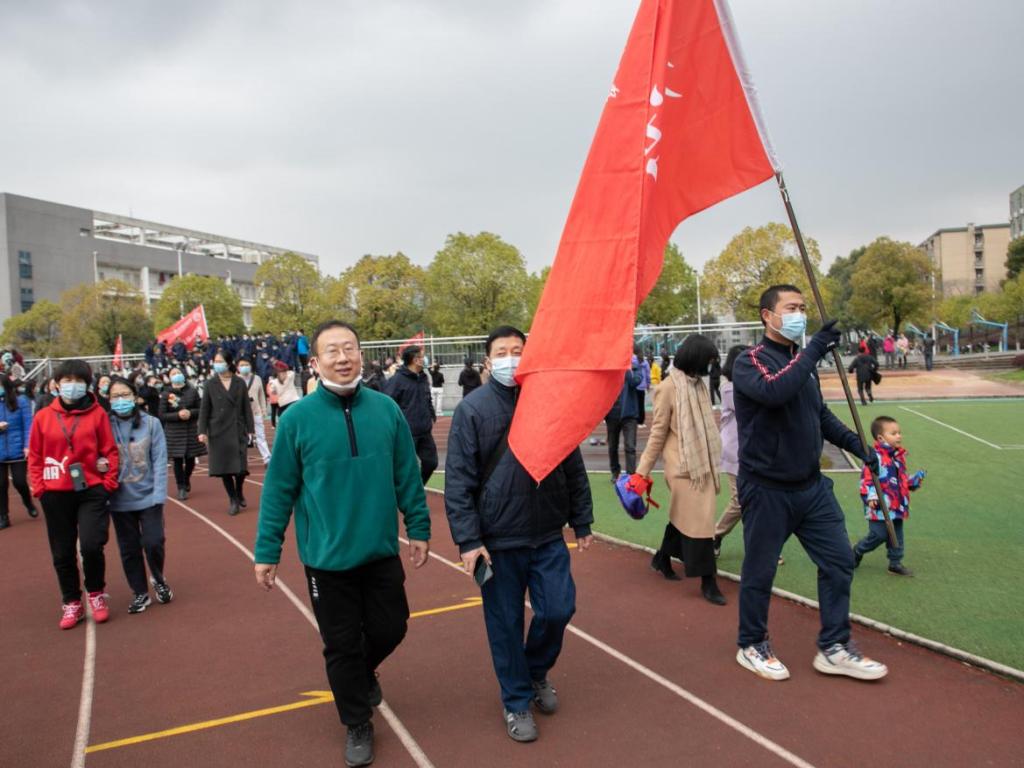 活動當(dāng)天,老師們在南區(qū)操場集合留影,按照學(xué)校路線安排,高舉學(xué)院旗幟,開始校園健步走活動。