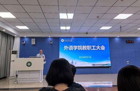 9月1日上午,學院召開全院教職工大會。院長易立新對學院暑期工作進行了總結,結合學校新學期工作要點,對學院各項工作做了整體部署,分管院領導強調了近期重點工作。黨委書記李春雷提出明確要求,一是新學期要把深入開展黨的二十屆三中全會精神學習作為重大政治任務,堅持原原本本學、全面系統學、融會貫通學、聯系實際學,進一步深化認識、統一思想、凝聚力量,推動學院教育教學改革和人才培養質量提升;二是要筑牢意識形態安全防線,提升安全風險防范意識,深入學習貫徹《中共中央 國務院關于弘揚教育家精神加強新時代高素質專業化教師隊伍建設的意見》,堅守師德師風底線,聚焦鑄牢主線,落實立德樹人根本任務。