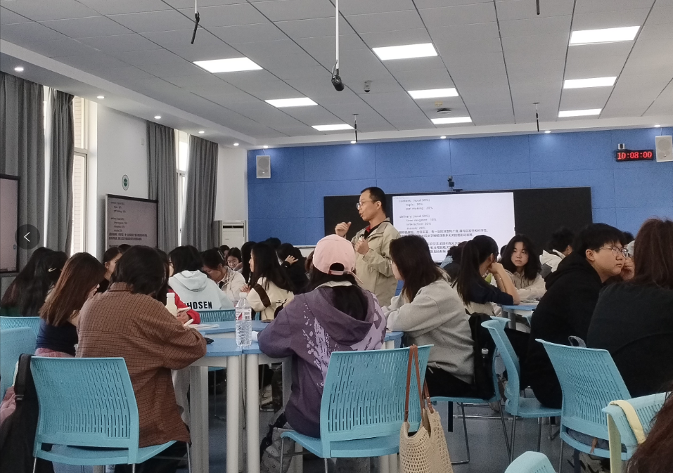 11月8日,高等教育出版社劉瑾一行來我院調(diào)研,了解外語智能學(xué)習(xí)平臺iSmart配套的教材《新大學(xué)英語綜合教程》第一冊的使用情況。高等教育出版社外語事業(yè)部高等分社分社長劉瑾,副分社長趙凱鋒、湖北省教學(xué)服務(wù)中心外語組肖丹和大學(xué)英語第一教研室教師在10-511教室觀摩了皋峰老師的授課。