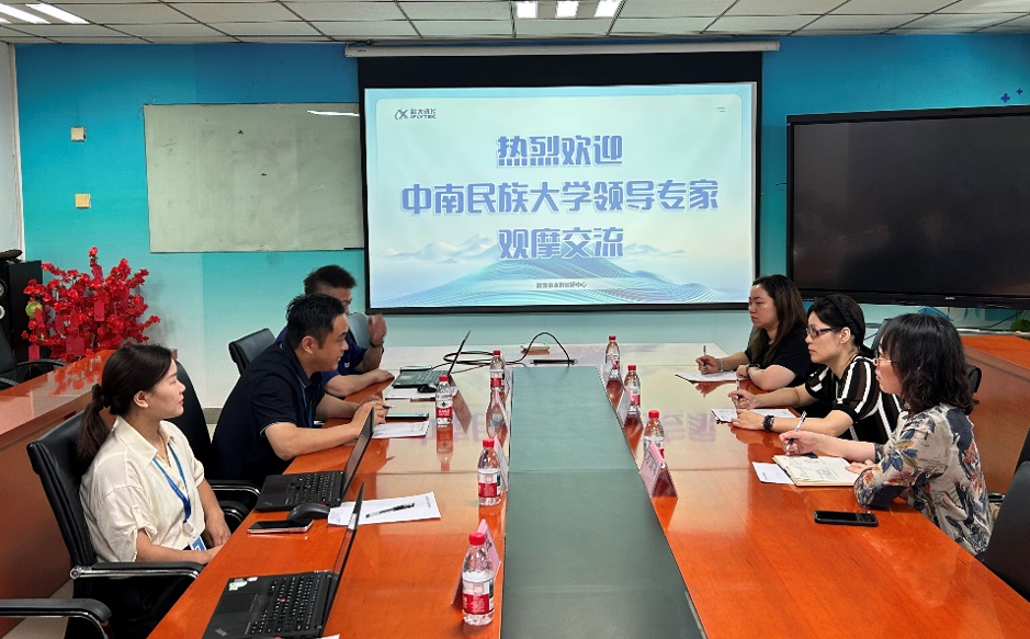 聚焦實習成效,共商合作新篇 在科大訊飛總部會議室,校企雙方舉行了實習基地建設專題會談。科大訊飛教研中心主任張雷對中南民族大學外語學院教師團隊的到訪表示熱烈歡迎,并充分肯定了實習學生的專業素養與工作態度。鄧之宇副院長代表學院感謝科大訊飛為學生提供的優質實踐平臺,并表示:“實習基地是高校人才培養的‘第二課堂’,希望雙方在現有合作基礎上,進一步拓展聯合課題研究、企業導師進課堂等深度合作模式,共同構建‘產學研用’一體化育人機制。” 會上,雙方就優化實習崗位設置、完善過程管理機制、建立實習實踐基地等議題達成初步共識,為下一階段合作拓展奠定基礎。