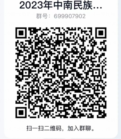 有意參加創新實驗班并符合條件的同學,須填寫《中南民族大學高層次國際化人才培養創新實驗班報名表》(附件1)及《中南民族大學高層次國際化人才培養創新實驗班個人信息表》(附件2),于3月30日12:00前發送至電子郵箱wy-jiaoxue@mail.scuec.edu.cn (注:郵件主題為“實驗班報名表+學院+姓名”),并加入QQ交流群(群號699907902):