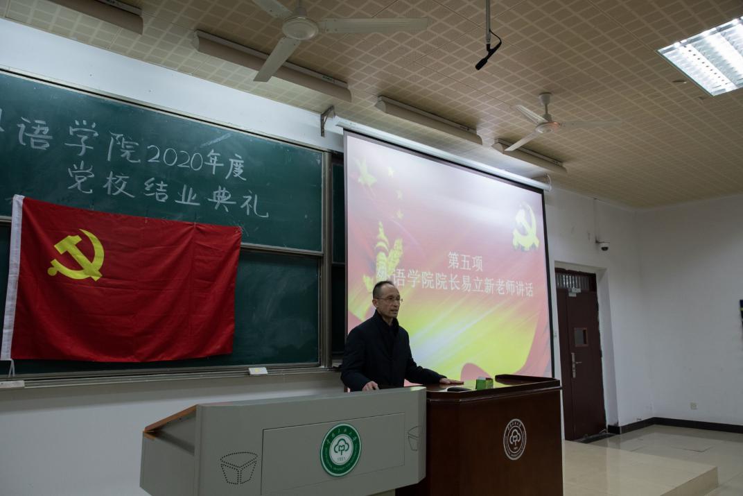 易立新院長發表講話。他強調,培訓班同學們要不斷學習,特別是對四史的學習,從黨史、新中國史、改革開放史和社會主義發展史中學習精神并汲取力量,堅定入黨信念,加強實踐鍛煉,盡早正式加入中國共產黨。