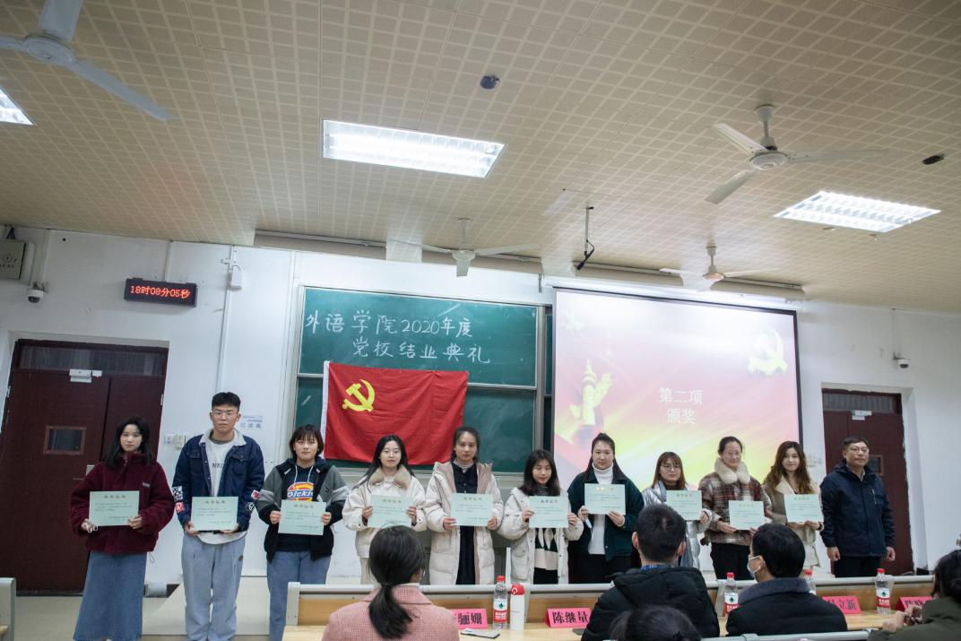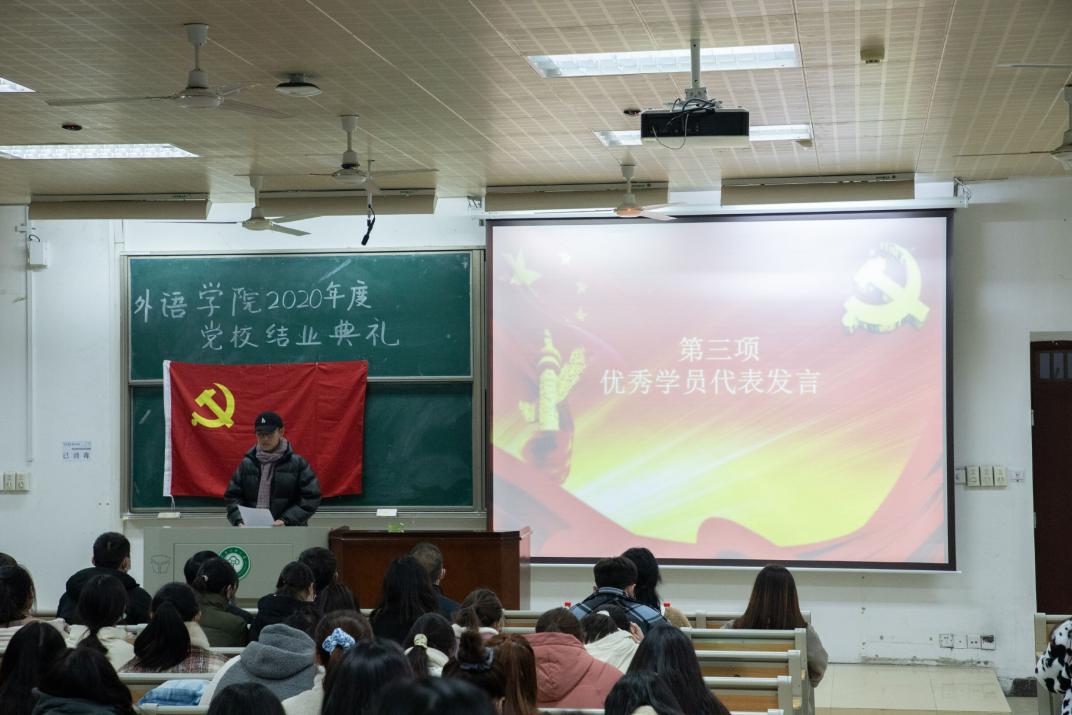 12月11日晚,我院黨校結業典禮于11號教學樓成功舉辦。外語學院黨委書記戴迎峰、院長易立新,黨委副書記陳曉希、黨委組織員韋應忠,團委書記兼2020級輔導員陳繼量,2019級輔導員陳驪姍,2017級輔導員楊舒情出席本次結業典禮。黨校全體學員到場參加,陳曉希副書記主持。