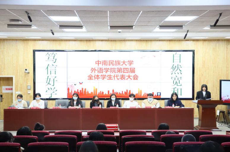 10月15日晚,中南民族大學外語學院第四屆全體學生代表大會于一號樓101教室順利召開。院黨委副書記陳曉希,團委副書記陳驪姍,2020屆本科生團委副書記楊欣,2020屆學生會主席王思琪,2020屆研究生團委副書記楊舒情及各年級學生代表出席會議,會議由楊舒情主持。