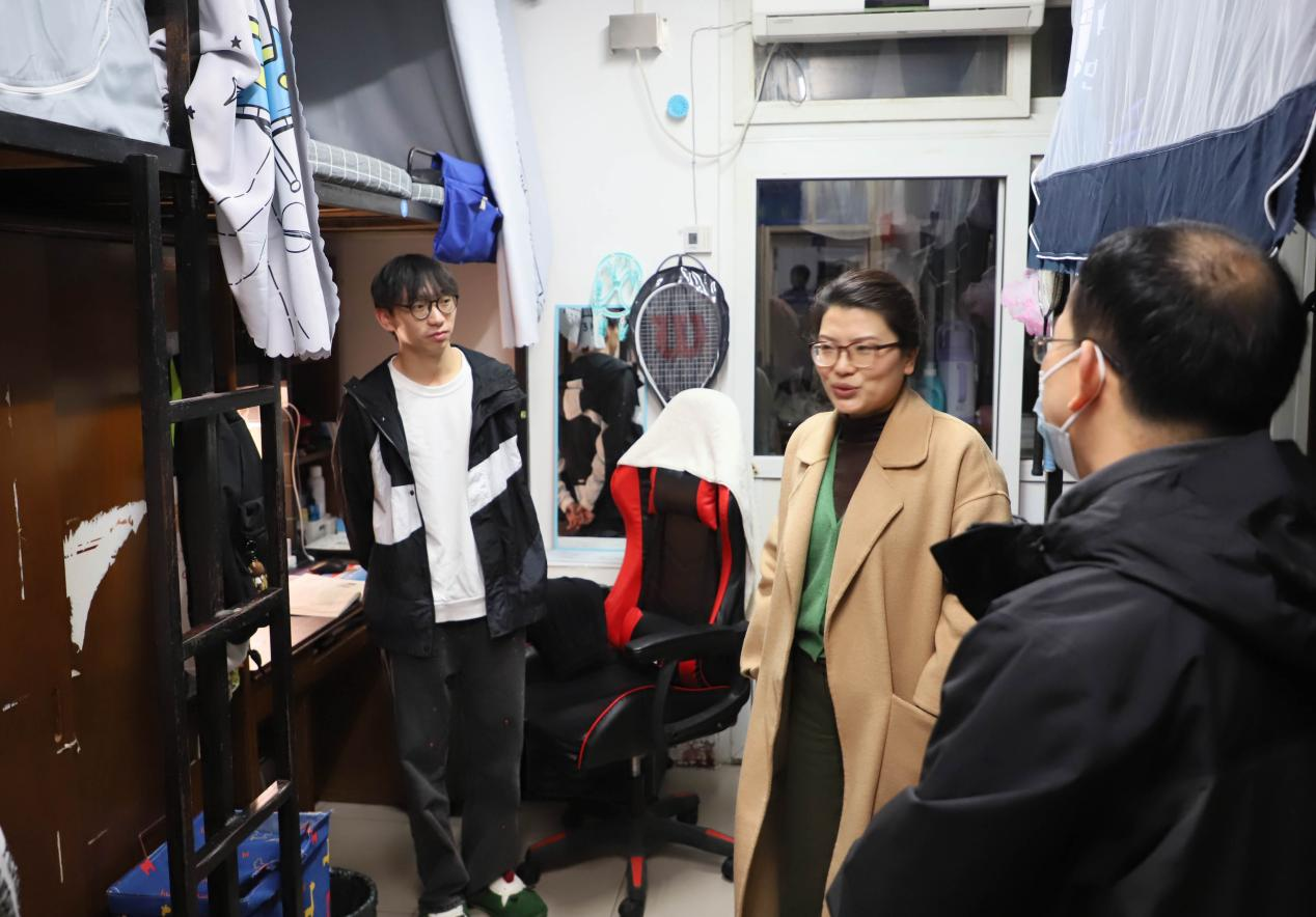 本著“圍繞學(xué)生,關(guān)愛學(xué)生,服務(wù)學(xué)生”的工作原則,12月13日晚上,國際合作與交流處黨支部書記、處長孫曉麗帶領(lǐng)支部黨員們主動、積極深入到學(xué)生生活中,來到學(xué)生宿舍看望“成長守望計劃”學(xué)生。