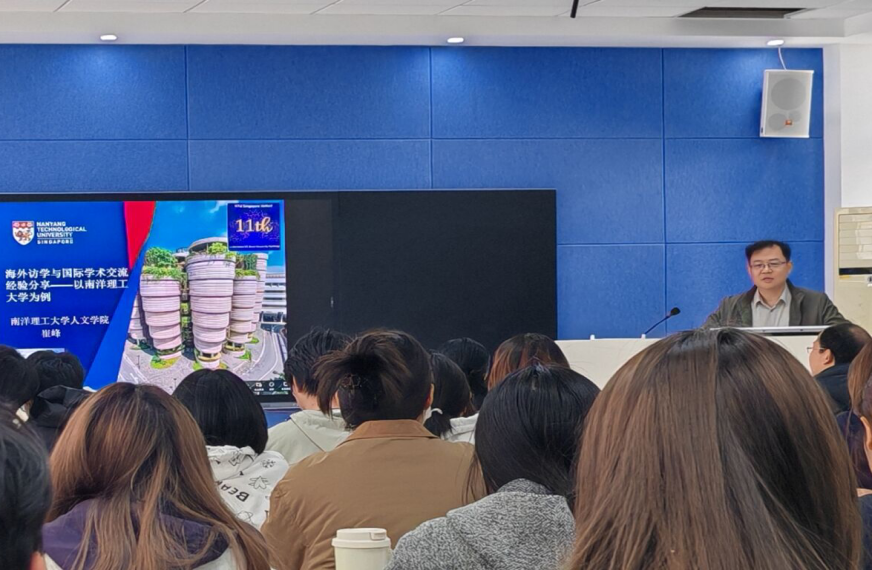 3 月 19 日下午,新加坡南洋理工大學(xué)中文系高級(jí)講師(副高級(jí))、博士生導(dǎo)師崔峰應(yīng)邀前來(lái)我院,為師生開(kāi)展海外訪學(xué)與國(guó)際學(xué)術(shù)交流經(jīng)驗(yàn)分享,活動(dòng)由我院學(xué)生工作辦公室副主任王斌老師主持,學(xué)院師生代表80余人參加。