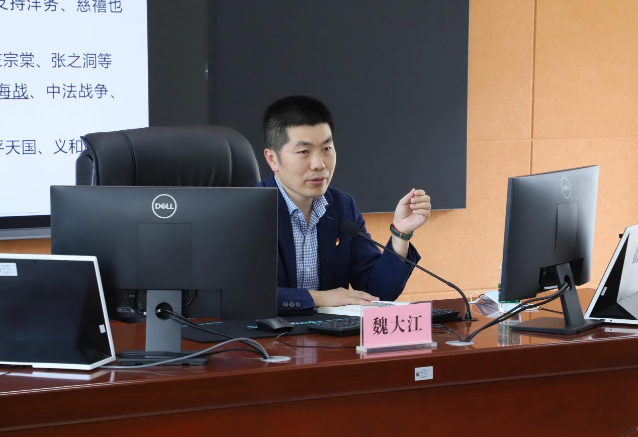 為深入開展學習貫徹習近平新時代中國特色社會主義思想主題教育,外語學院主題教育讀書班于5月9日下午開展第一期學習,馬克思主義學院黨委書記魏大江受邀作為主講人作了題為《以中國式現代化全面推進中華民族偉大復興——學習貫徹習近平新時代中國特色社會主義思想》的輔導報告。外語學院黨委委員、理論學習中心組成員參會,院黨委書記戴迎峰主持會議。