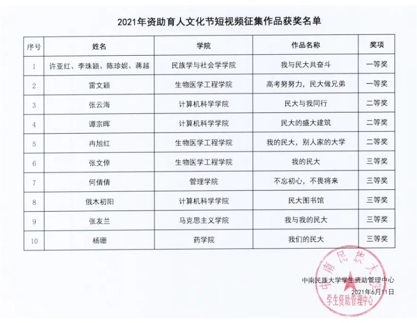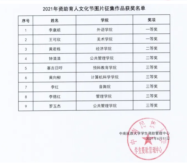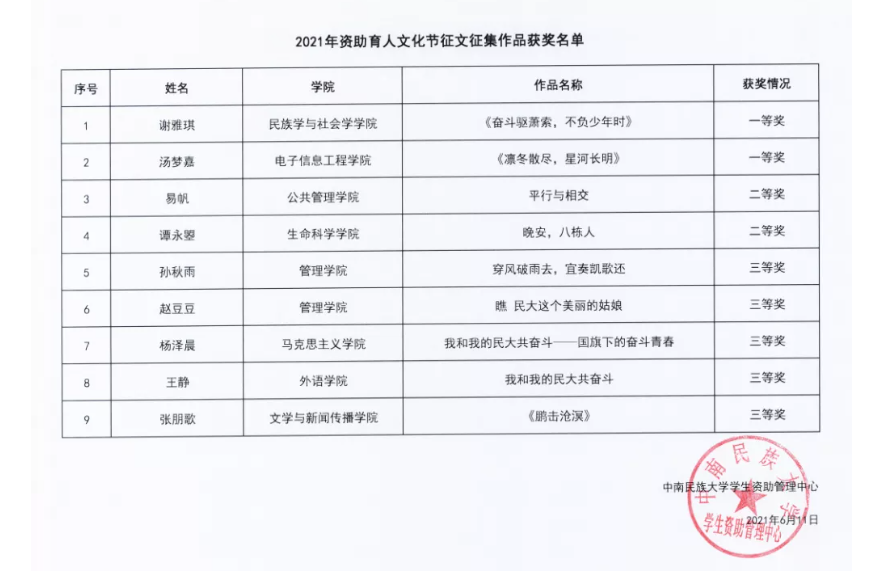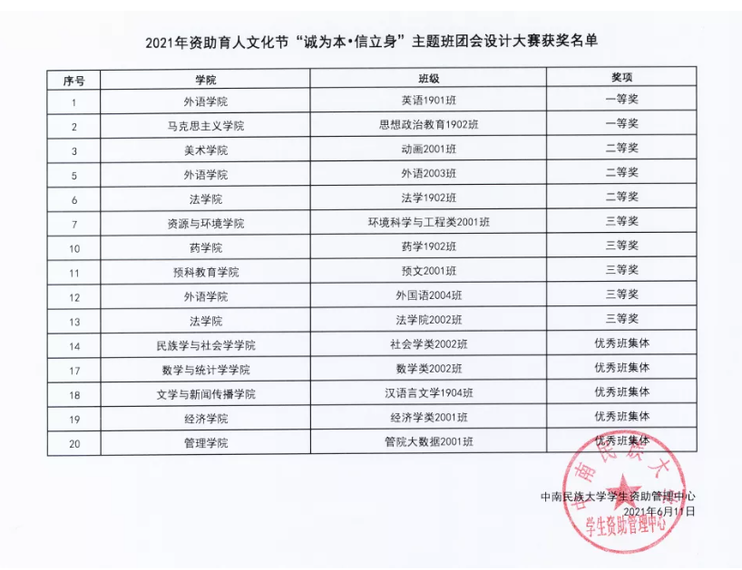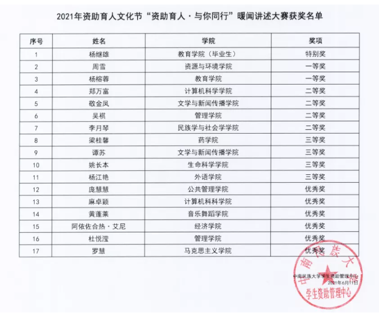 鍏充簬涓崡姘戞棌澶у2021騫粹滆祫鍔╄偛浜烘枃鍖栬妭鈥濊幏濂栧悕鍗曠殑鍏ず |