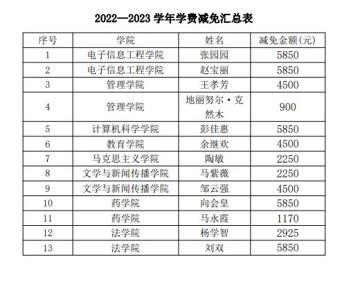 鍏充簬2022鈥?023瀛﹀勾瀛﹁垂鍑忓厤銆佹棤鎭熸鍙楀姪瀛︾敓鍚嶅崟鐨勫叕紺? |