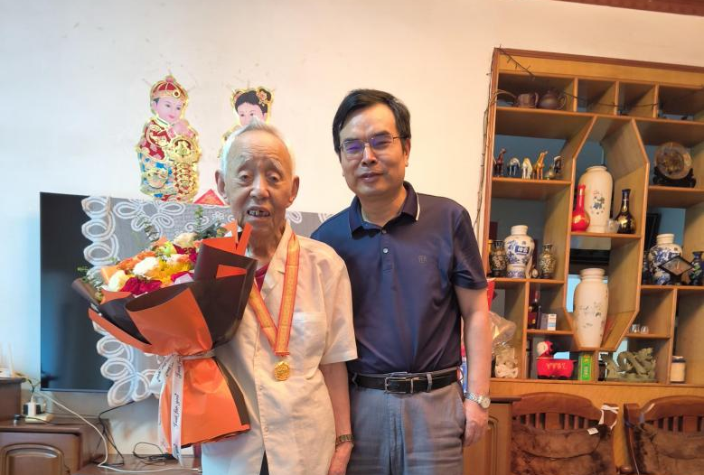 徐業勤為抗戰老同志謝洪義頒發“中國人民抗日戰爭勝利80周年...