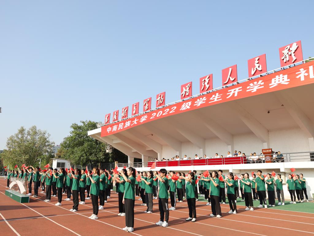 “我和我的祖國,一刻也不能分割……”9月17日上午,在悠揚的歌聲中,2022級學生開學典禮在南湖中心體育場隆重舉行,來自全國各地的8558名新生線上線下相聚雙塔下,齊聲合唱《我和我的祖國》,滿懷期待開啟嶄新征程。校黨委常委,相關職能部門負責人,各學院主要負責人、學生工作負責人參加了開學典禮。典禮由副校長杜冬云主持。